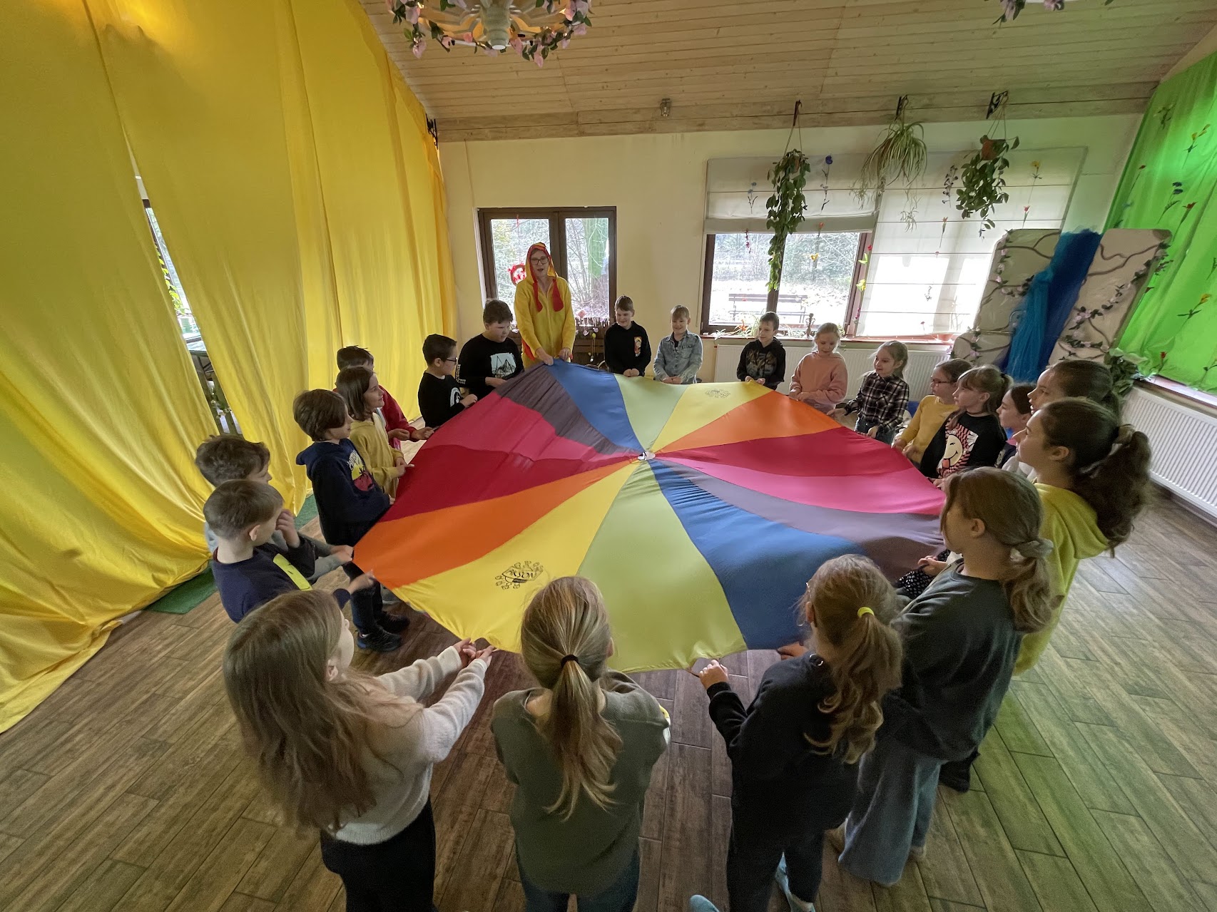 Podczas przerwy na śniadanko obejrzymy wiosenną bajkę i będziemy mogli skorzystać z jarmarku, gdzie znajdziemy piękne ozdoby i świetne zabawki na nadchodzące, ciepłe dni.